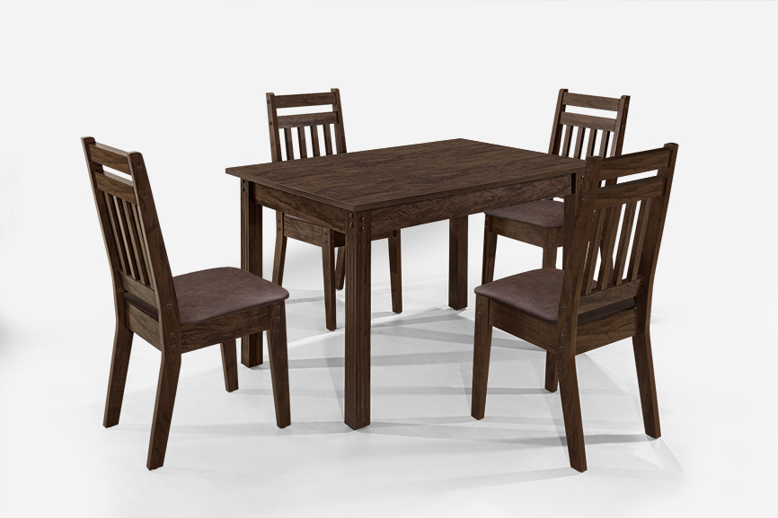Mesa Tampo (MDF / Piso): Alt.: 77cm | larg.: 80cm | Comp.: 120cm Tampo de Mdf 18mm Mesa Tampo (MDF): Alt.: 77cm | larg.: 80cm | Comp.: 120cm Tampo de Mdf 15mm Cadeira: alt.:99cm | larg.: 39cm | prof.: 43cm Estrutura em MDF