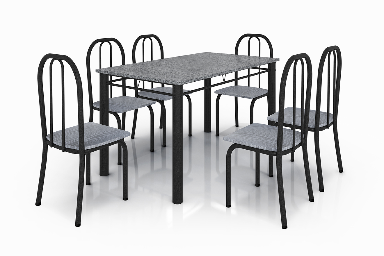 Mesa: Alt.: 77cm | larg.: 78/80cm | Comp.: 120/140cm Cadeira: alt.:94cm | larg.: 37cm | prof.: 40cm