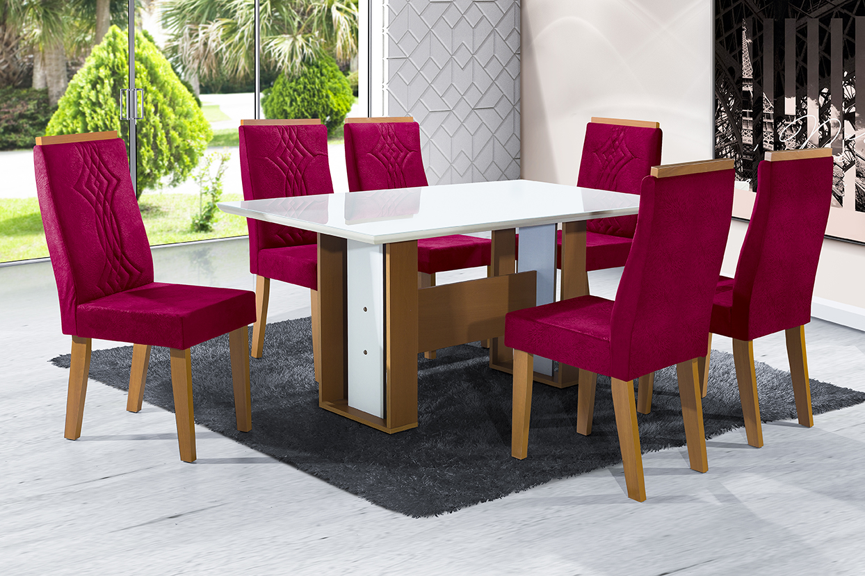 Mesa: Alt.: 78cm | larg.: 90cm | Comp.: 160cm Tampo de Mdf C/ vidro 3mm Cadeira: alt.:104cm | larg.: 43cm | prof.: 50cm