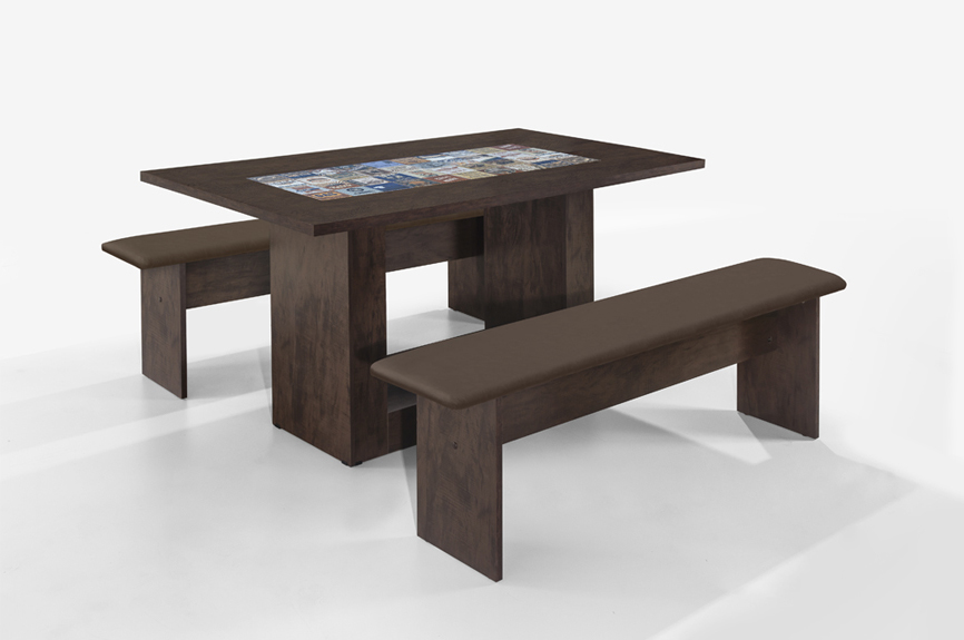 Mesa: Alt.: 78cm | larg.: 90cm | Comp.: 160cm Tampo de Mdf 25mm Pisos Banco: alt.:48cm | larg.: 31cm | prof.: 160cm Estrutura em MDF estofada